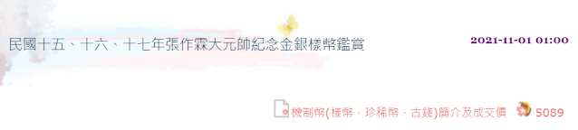 四、 張作霖大元帥紀念銀樣幣近年拍賣情形: